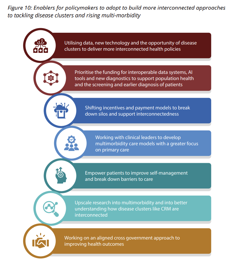 By unlocking these seven enablers for change, new progress can be made in pursuing interconnected approaches to tackling CRM across the three policy opportunities of: national health plans, CVD prevention strategies and in the design of guidelines, pathways and models of care.